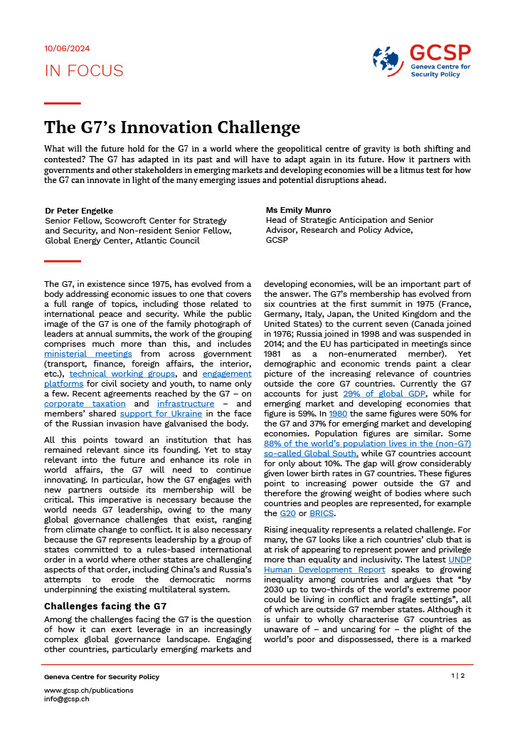 Insights and Analysis from the GCSP’s Strategic Anticipation Cluster