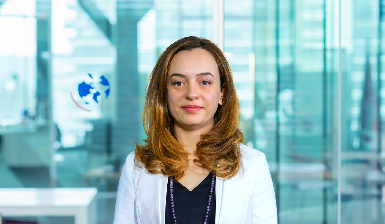 Her native language is Romanian, she speaks fluently English, French and Arabic.
