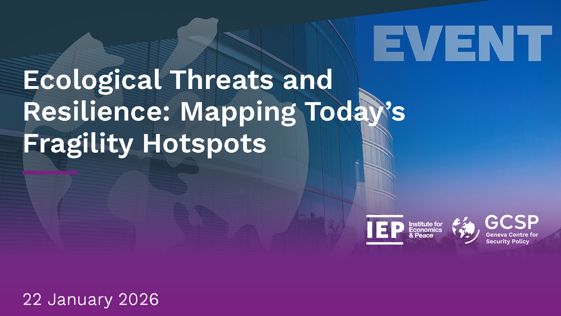 Join the Geneva Center for Security Policy and the Institute for Economics & Peace as we take a look at the links between climate change, ecological threats, migration, and conflict. This conversation is part of the Ecological Threat Report Series, dedicated to discussing the key findings of the sixth edition of the Ecological Threat Report.