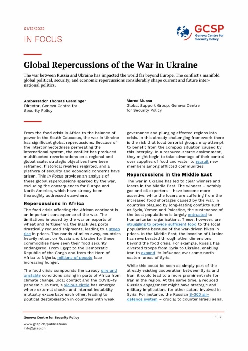 From the food crisis in Africa to the balance of power in the South Caucasus, the war in Ukraine has significant global repercussions. Because of the interconnectedness permeating the international system, the conflict has produced multifaceted reverberations on a regional and global scale: strategic objectives have been reframed, historical rivalries reignited, and a plethora of security and economic concerns have arisen. This In Focus provides an analysis of these global repercussions sparked by the war, excluding the consequences for Europe and North America, which have already been thoroughly addressed elsewhere.